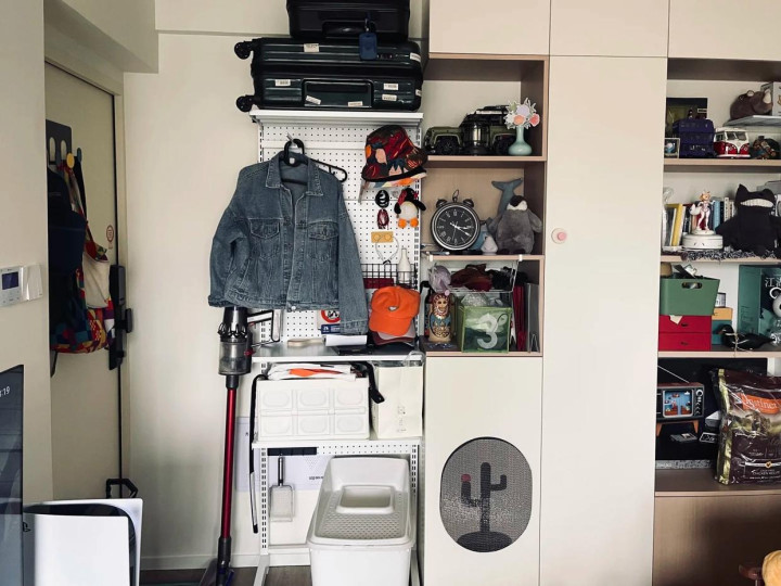 而且博主又喜欢各种玩偶摆件,因此玄关侧边的收纳柜几乎都塞满了各种物品,生活气息满满。