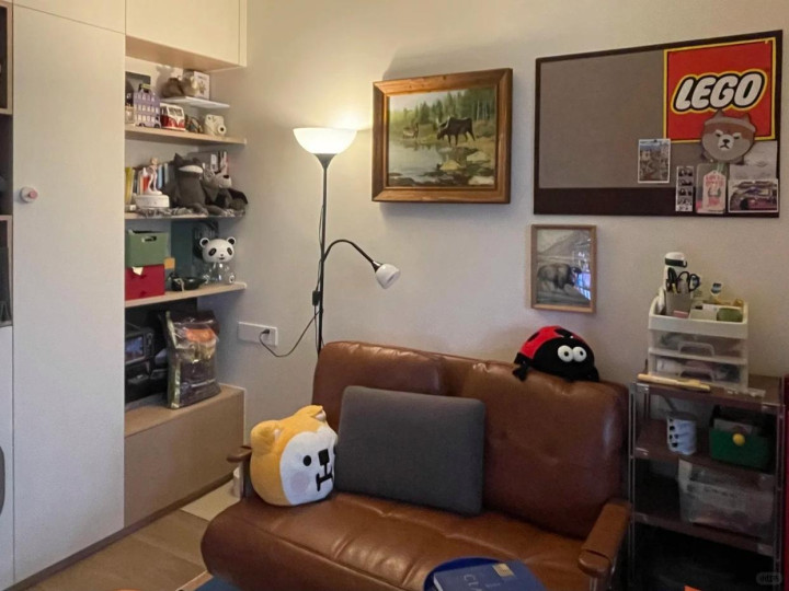 有些网友觉得这个小户型不能摆放太多东西,但是博主觉得是一个人住,而且自己也喜欢这些公仔摆件,将它们摆满,看起来更有烟火气,也很有安全感,这样的小屋谁能不爱呢?