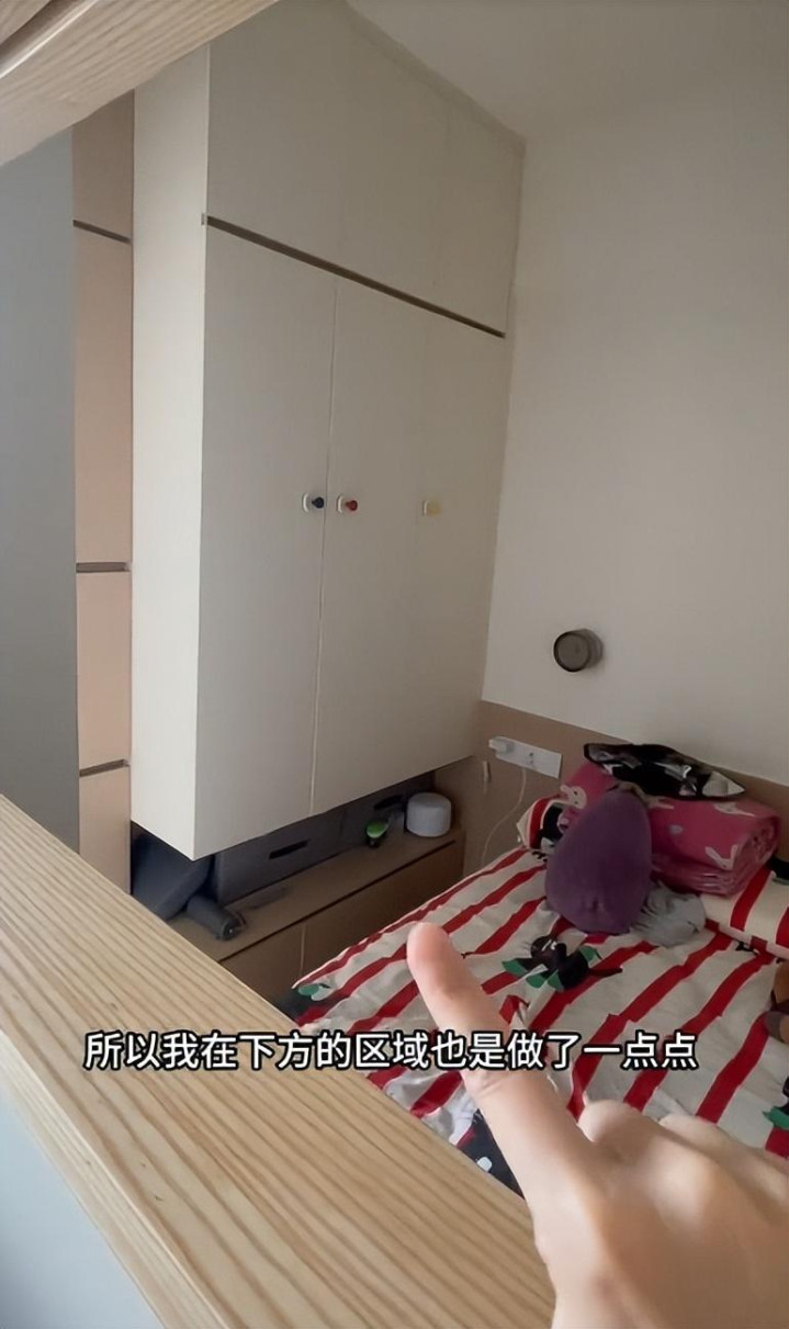 最后就是主卧了,主卧空间比较小,因此直接安装了一台地台床,底部也可以收纳东西,将地台底部的抽屉一拉,各种东西就可以清晰地展示出来,拿取也很方便。
